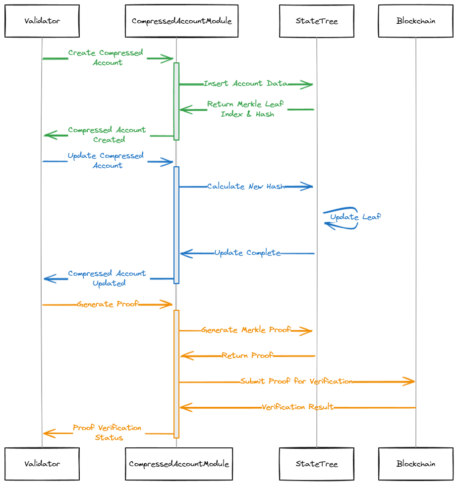 Each transaction within the BARA rollup is represented as a **compressed account**. These accounts can be program-owned and optionally have a **permanent unique address (PDA)**. BARA will use the **Light Compressed Account** implementation.